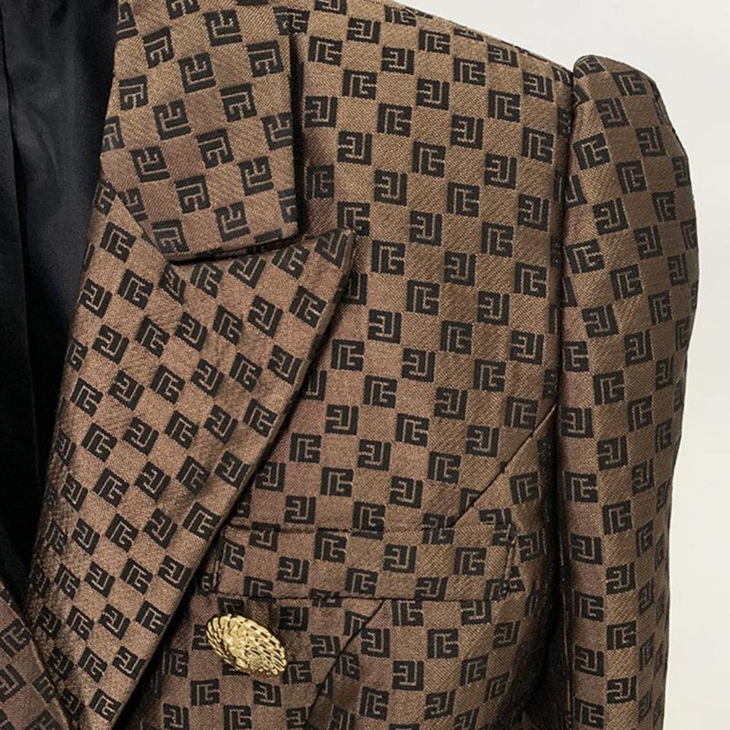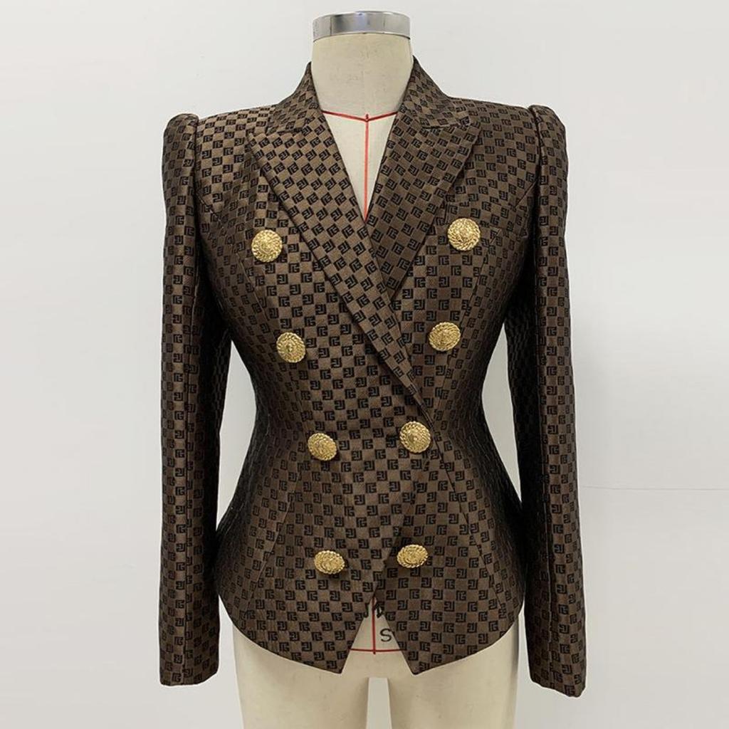 2024 Весна Осень Женские Пиджаки Двубортный Женский Пиджак с Золотыми Пуговицами и Головой Льва Приталенный Пиджак с Принтом Женская Мода