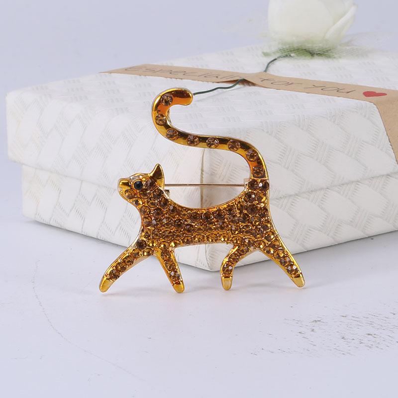 Высококачественная брошь ручной работы со стразами в виде кошки, антибликовая булавка для воротника, ювелирные аксессуары