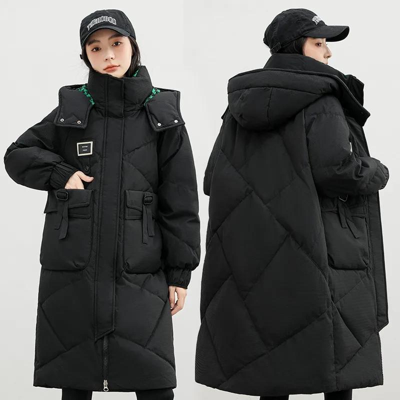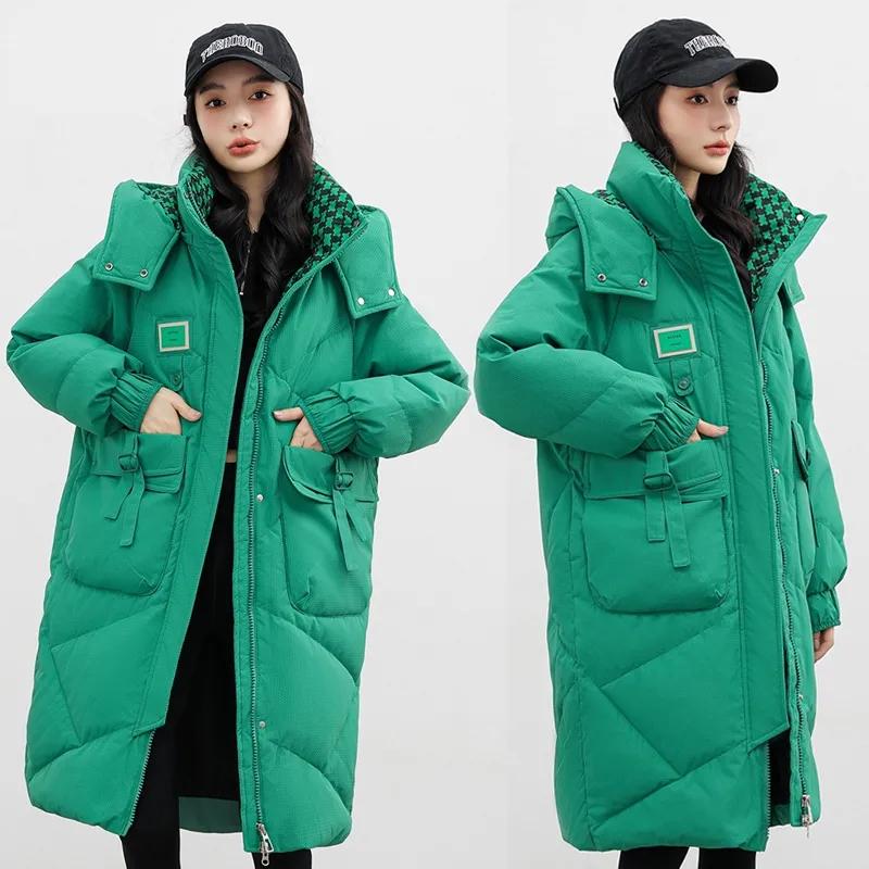 Длинное хлопковое пальто с капюшоном, женские корейские свободные парки с хлопковой подкладкой, зимняя женская куртка, толстая теплая стеганая куртка, пальто