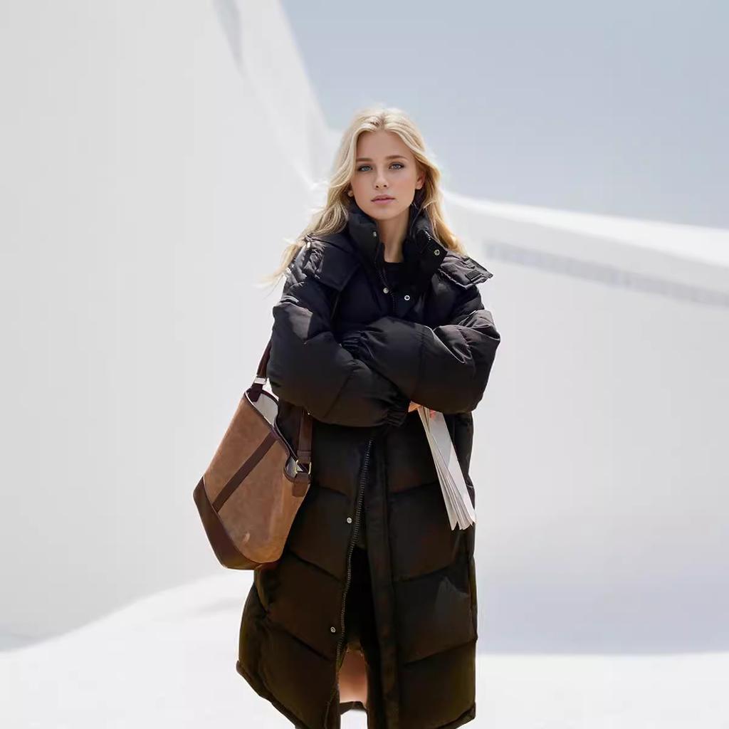 Длинная хлопковая куртка выше колена 2024 года, зимняя новая женская повседневная однотонная парка с капюшоном, пальто для женщин, демисезонная куртка для женщин