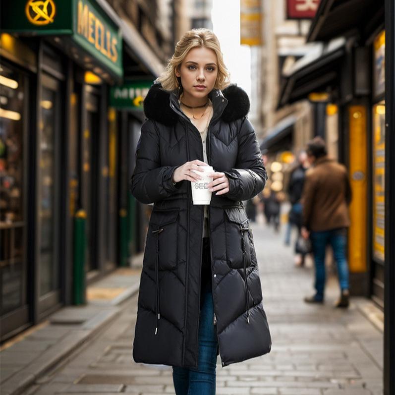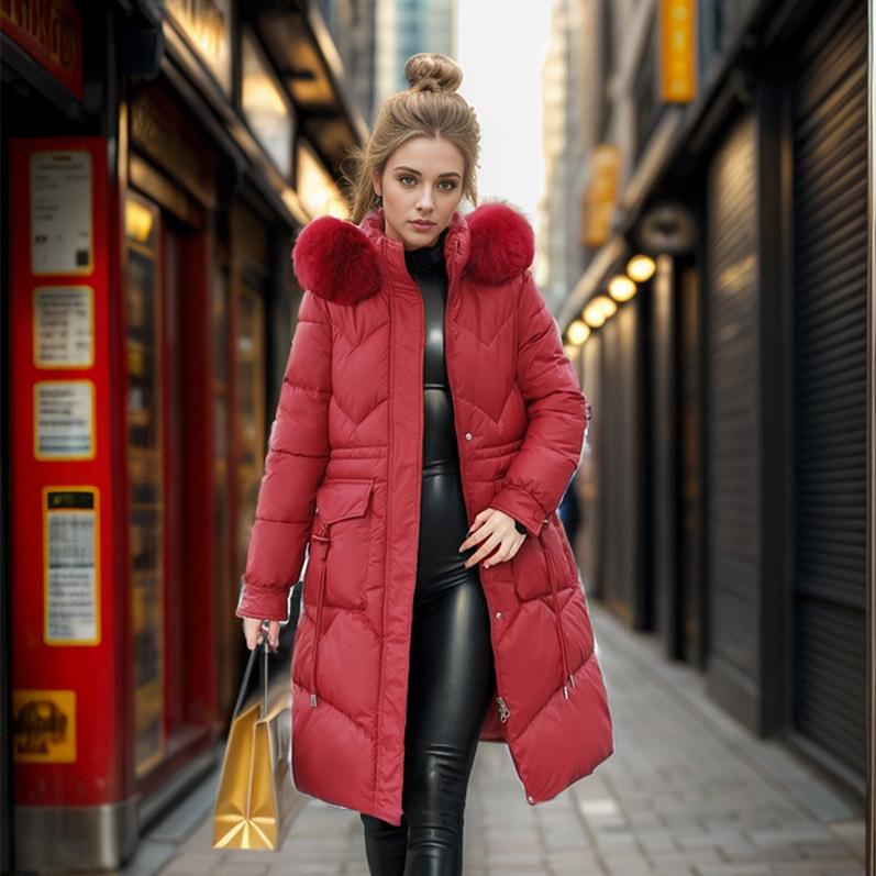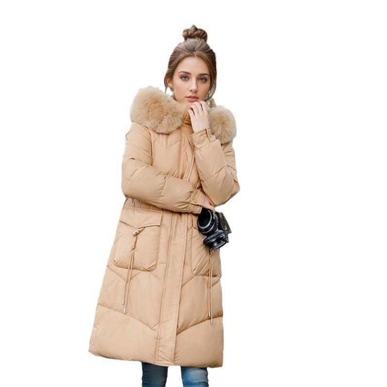 Женская стеганая куртка с большим меховым воротником, теплая куртка, зимняя женская однотонная хлопковая куртка с капюшоном и 2 карманами, женская одежда