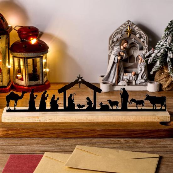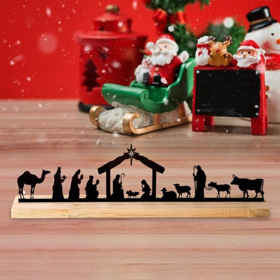 Украсьте свой праздничный декор нашими изысканными украшениями для рождественских сцен. Изготовленное из высококачественного металла с прочным деревянным основанием, это настольное украшение одновременно легкое и долговечное.. Легко собирается: просто вставьте металлическую вывеску в деревянную основу для надежной демонстрации, которая принесет радость на ваши вечеринки и праздники.. Классическая тема рождественского вертепа добавит гармоничный штрих в интерьер вашего дома, создав теплую и уютную атмосферу.. Это украшение, на котором изображен очаровательный сюжет Рождества Христова, обязательно привлечет внимание и подарит радость в праздничный сезон.