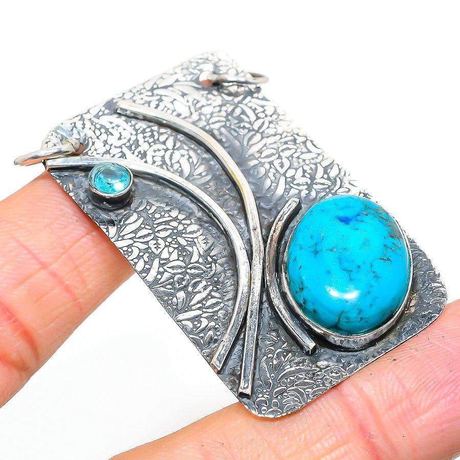 Подвеска из серебра 925 пробы с натуральной тибетской бирюзой и голубым топазом 2,32 дюйма