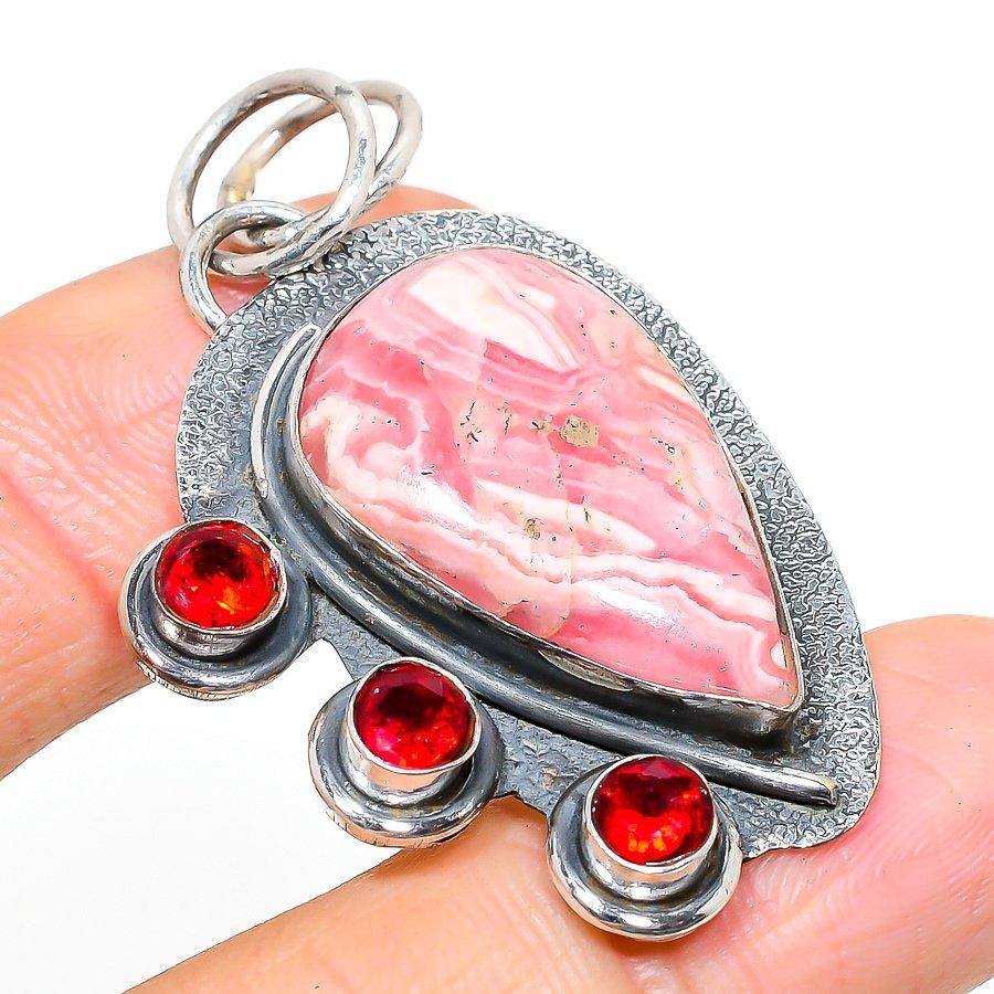 Подвеска из серебра 925 пробы с натуральным родохрозитом и гранатом 2,01 дюйма