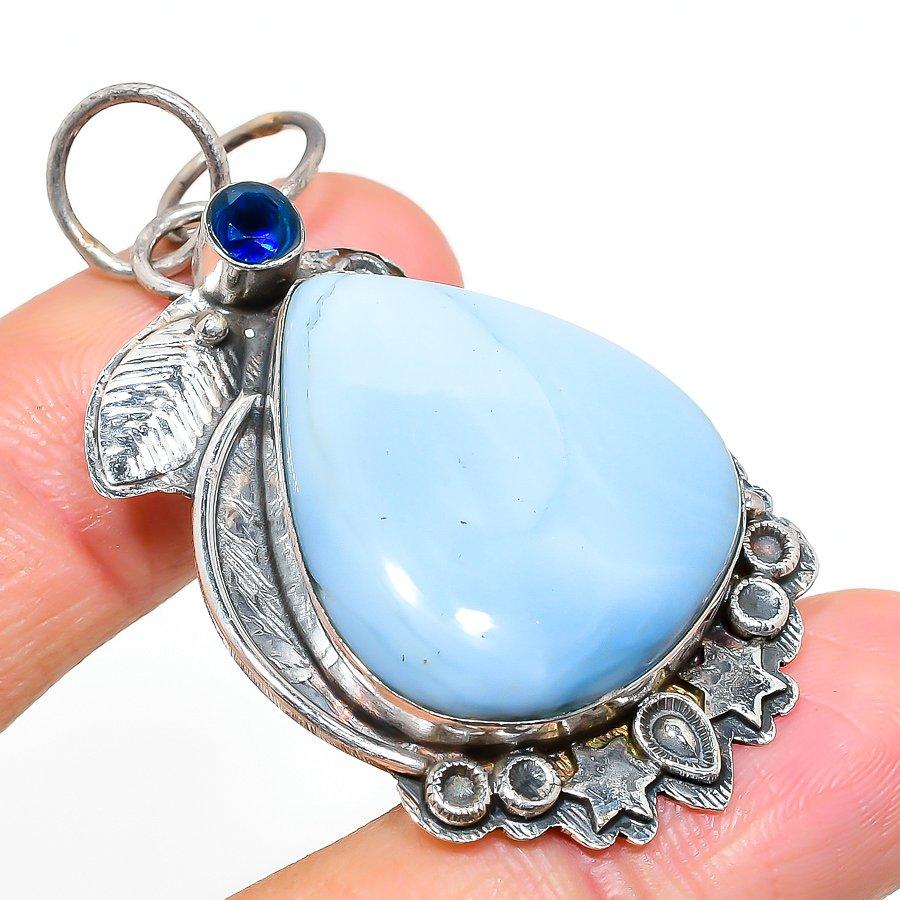 Подвеска из серебра 925 пробы с натуральным опалом Оуайи и голубым топазом 2,17 дюйма