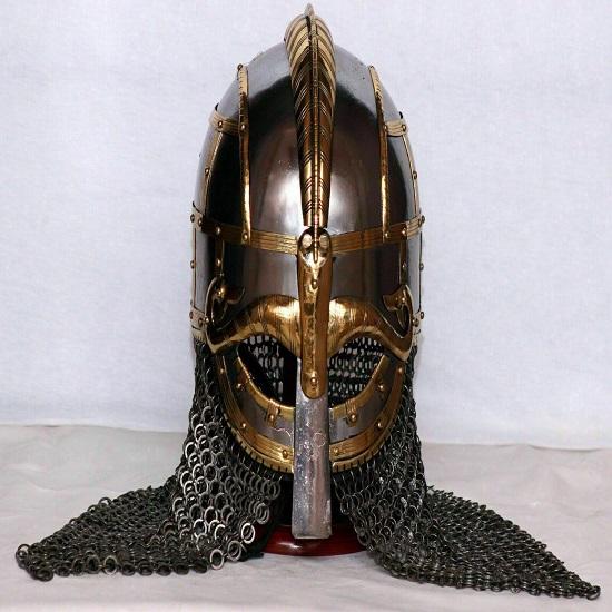 Защита кольчугой. Интегрированная защита шеи из кольчуги обеспечивает дополнительный уровень защиты, закрывая уязвимую область шеи и придавая ей грозный вид, отражающий истинный дух викингов.. Кольчуга изготовлена из переплетенных стальных колец, что обеспечивает ее функциональность и историческую точность.
