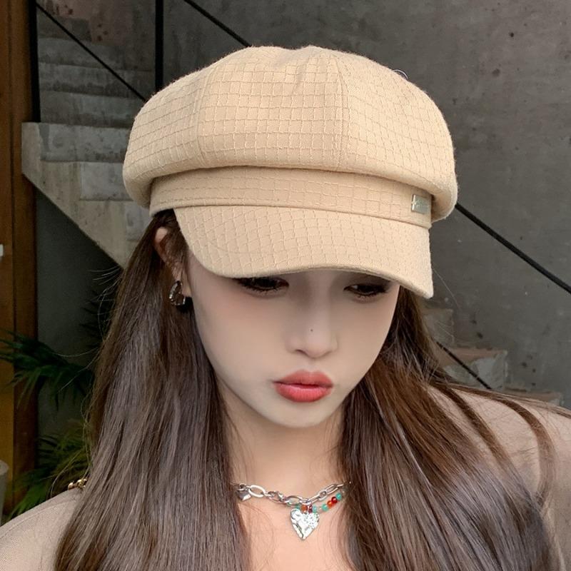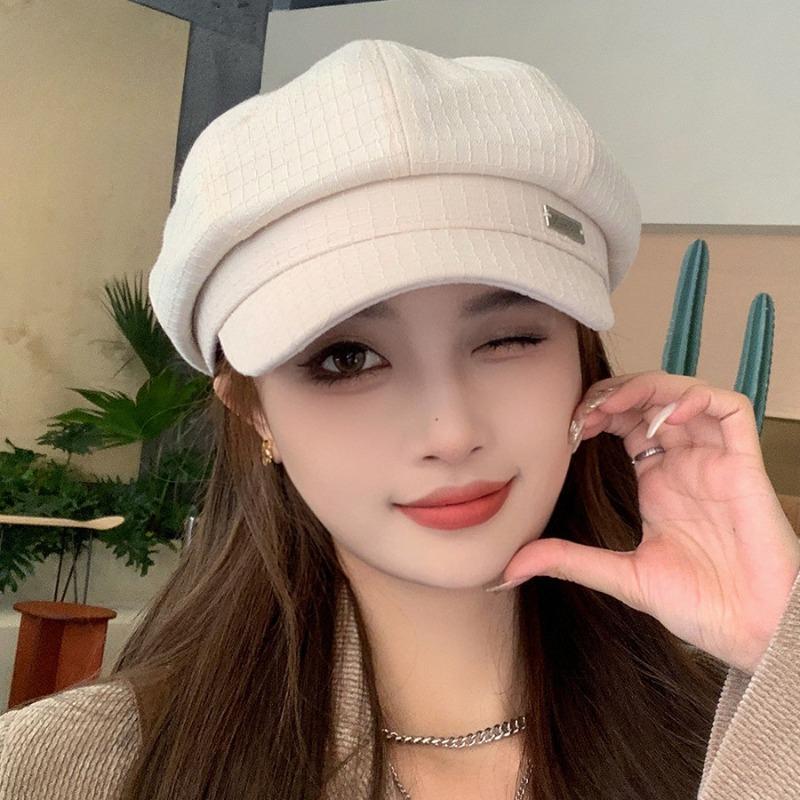 Ins корейская версия сетчатая текстурированная восьмиугольная шляпа осень-зима берет с металлическим логотипом художественный повседневный простой газетчик шляпа