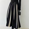 Осенняя эксклюзивная юбка средней длины с высокой талией, цветные блоки, плиссированная юбка, полуоблегающая длинная юбка, европейские товары, осенне-зимняя трикотажная юбка, женская тенденция