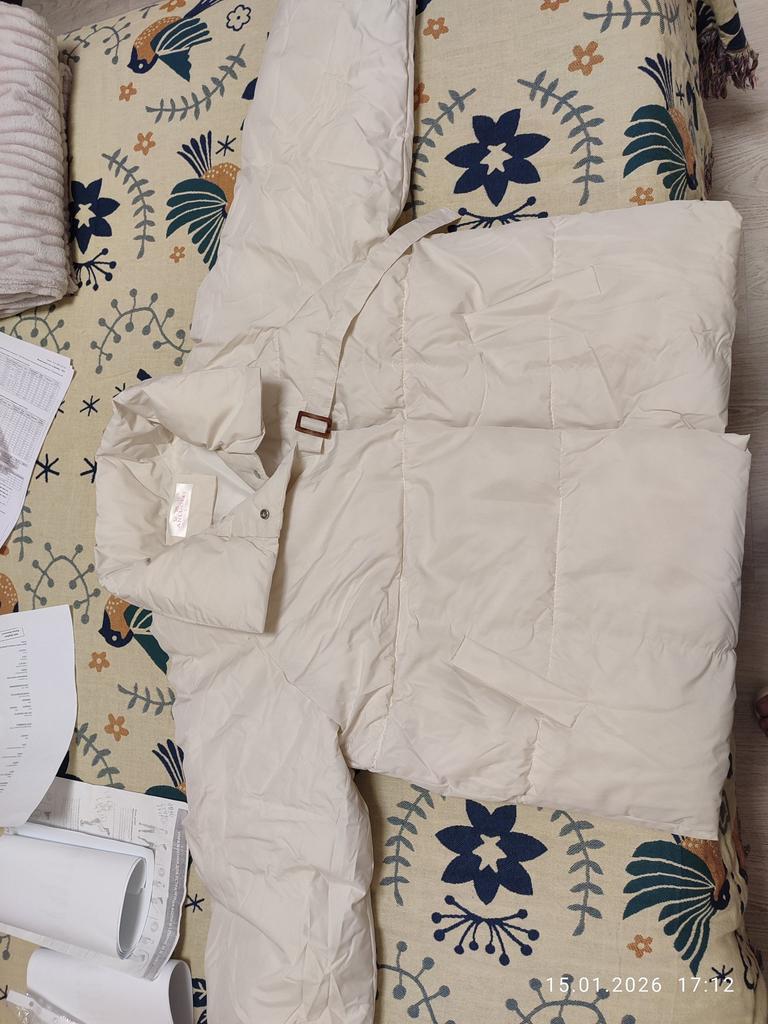 Пуховик по качеству хороший, но мне большеват, можно было на размер меньше заказать, не маломерит. Цвет- да тоже немного отличается, ярче и насыщеннее что-ли, на картинке более нежный и матовый. Попробую подобрать пояс, с поясом красивее выглядит.
