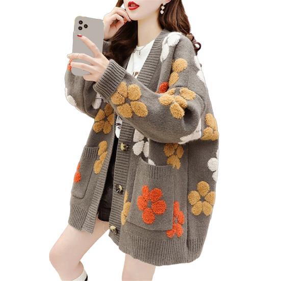 Этот кардиган-свитер повседневного свободного кроя подойдет любой фигуре.. Элегантный и милый цветочный дизайн придаст вашему наряду нотку изысканности.. Эта куртка с длинными рукавами и кардиганом одновременно стильная и практичная.