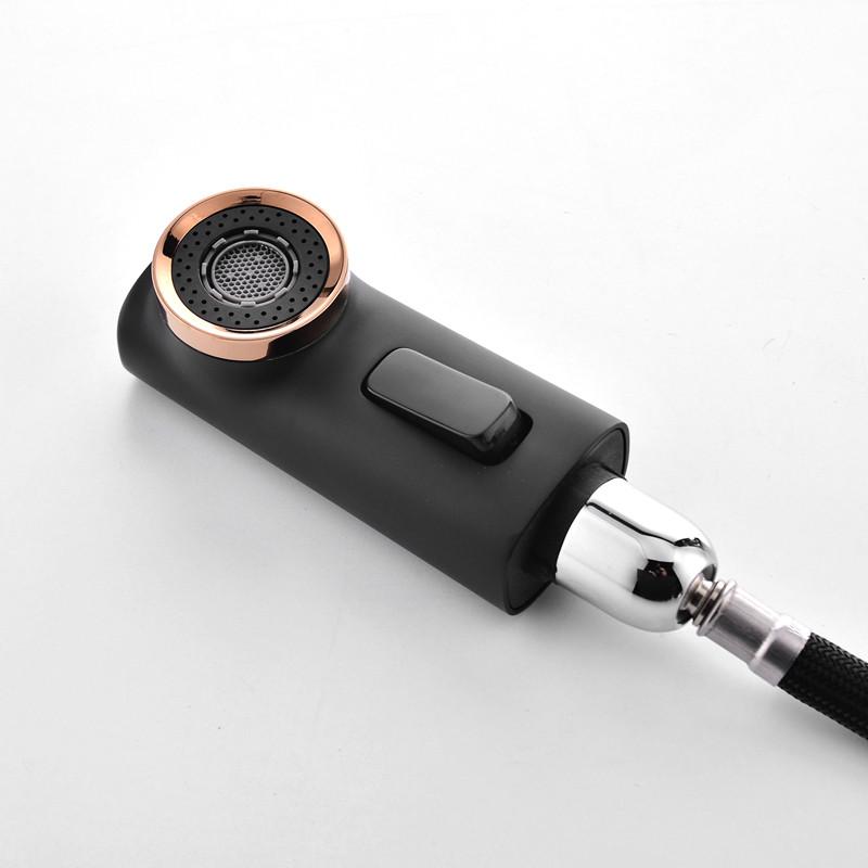 Выдвижной смеситель для раковины с одной ручкой (черный и розовое золото)