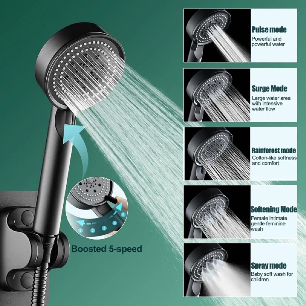 Новый 5 режимов Регулируемая насадка для душа для ванной комнаты Водосберегающий распылитель Душевая насадка высокого давления Черный эко-душ Аксессуары для ванной комнаты