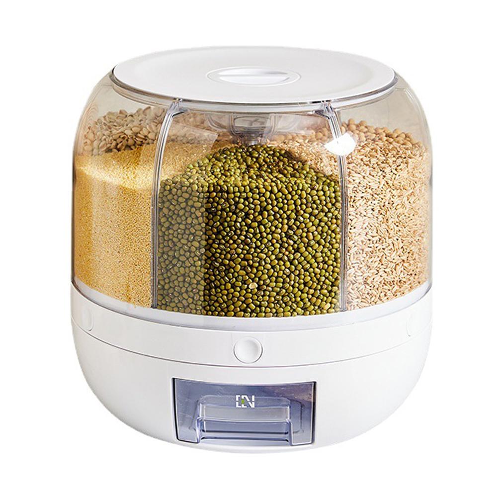 Идеальное решение: Этот вращающийся дозатор с 6 сетками — отличный вариант для хранения и раздачи. Он предназначен для зерновых культур, таких как рис, просо, маш, красная фасоль, ячмень, овес и т. д.. Он обеспечивает удобство, гигиену и защиту.