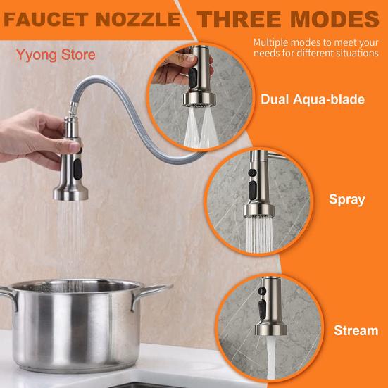 Насадка-распылитель для смесителя, съемная 3-функциональная регулируемая выдвижная металлическая насадка, сменная насадка для душа в ванной, удлинитель смесителя для раковины, кухонные принадлежности