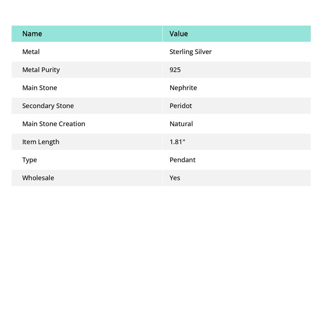Подвеска из серебра 925 пробы с натуральным нефритом и перидотом 1,81 дюйма B8J45