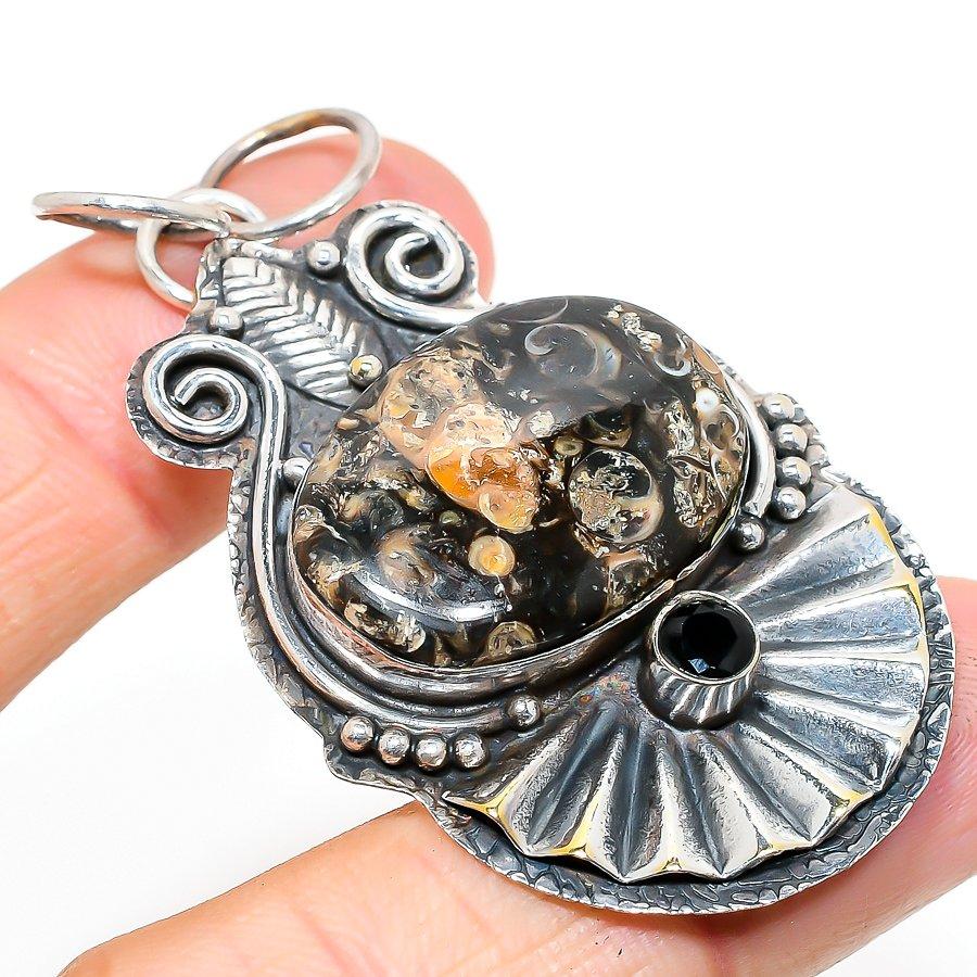 Подвеска из натурального окаменелого камня Turritella, шпинели, стерлингового серебра 925 пробы, 2,52 дюйма