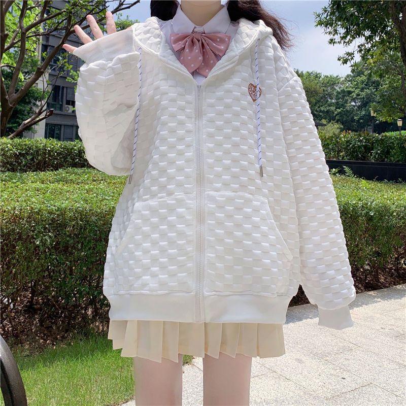 Осень и зима новый японский стиль милый свободный ретро универсальный студенческий нишевый дизайн вафельная куртка женский кардиган топ