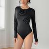 Осенний женский комбинезон с высокой эластичностью, длинными рукавами, однотонный боди с кубическим цветком и круглым вырезом