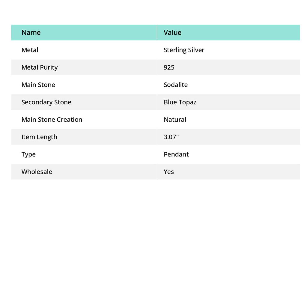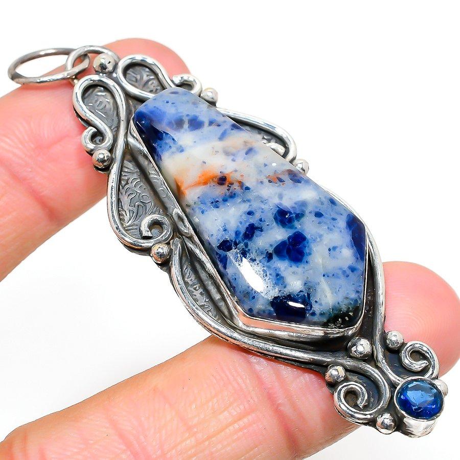 Натуральный содалит, драгоценный камень голубой топаз, кулон из серебра 925 пробы 3,07"