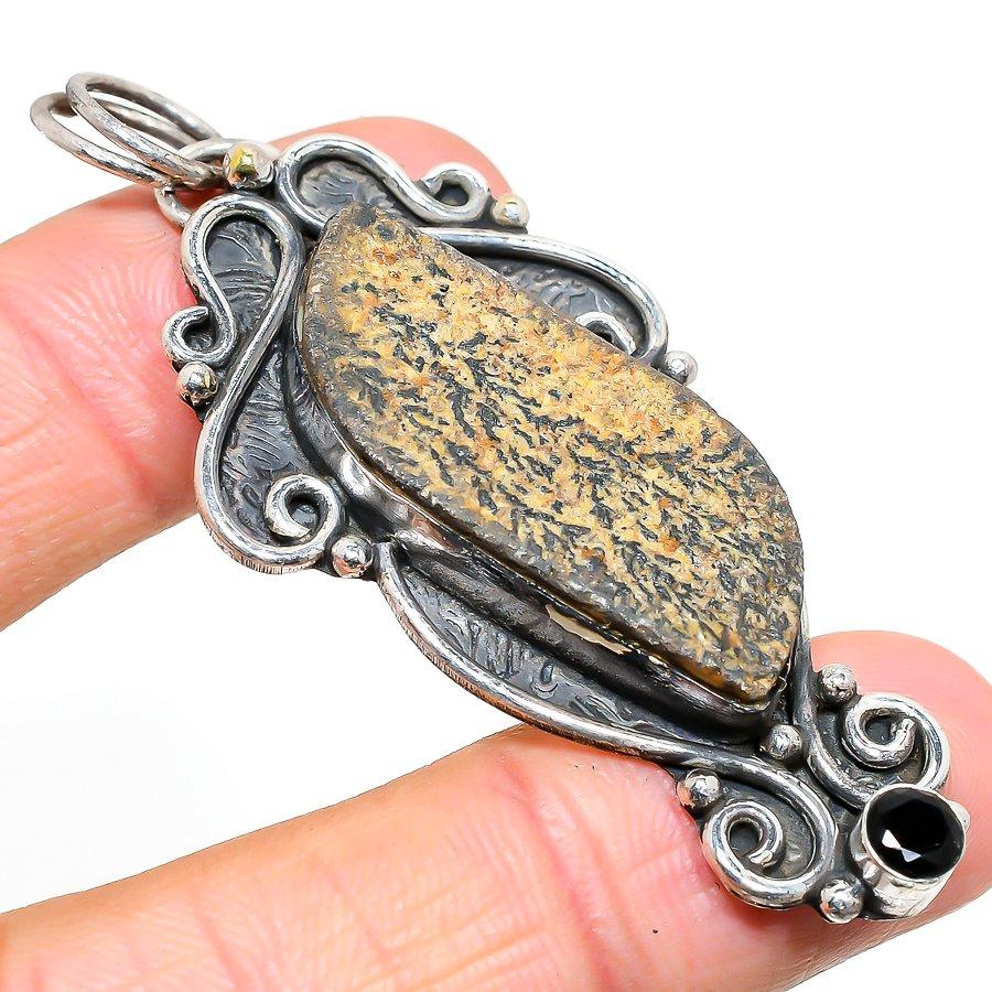 Подвеска из натурального псиломелана, шпинели, стерлингового серебра 925 пробы, 2,68 дюйма
