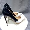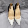 Туфли-лодочки на высоком каблуке, белые и черные, в стиле пэчворк, из кожи, женские, с заостренным носком, 12 см, сексуальные свадебные туфли-лодочки, размер 42, 44, 45