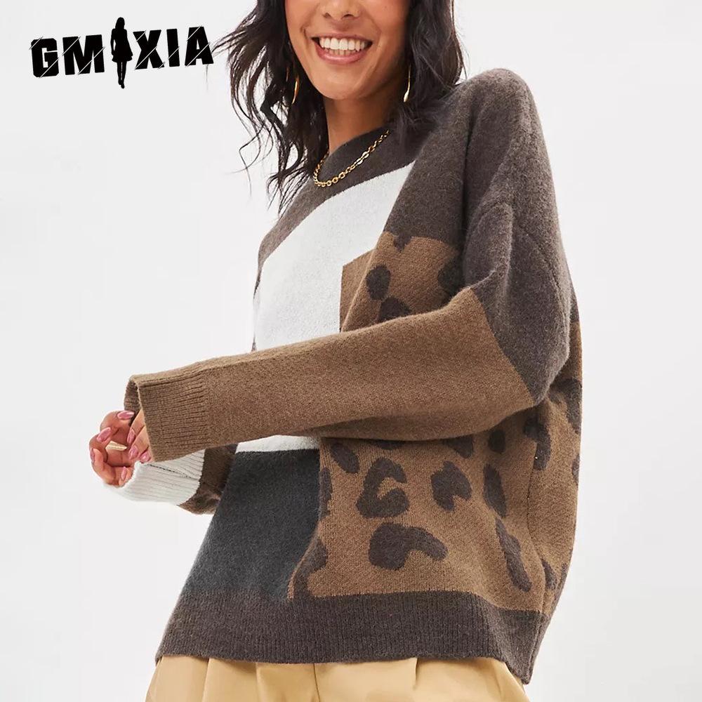 GMXIA Джемпер женский леопардовый принт осень и зима ретро свободная верхняя одежда ленивый ветер вязание темперамент пуловер топы