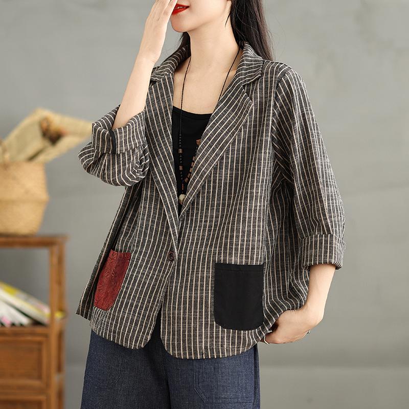 DIMANAF 2024 Женская базовая куртка в полоску больших размеров, новая осенняя, повседневное пальто оверсайз, модный винтажный топ с длинным рукавом свободного кроя — купить товар онлайн с бесплатной доставкой по всему миру!