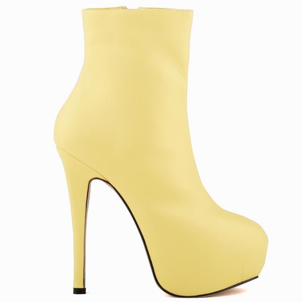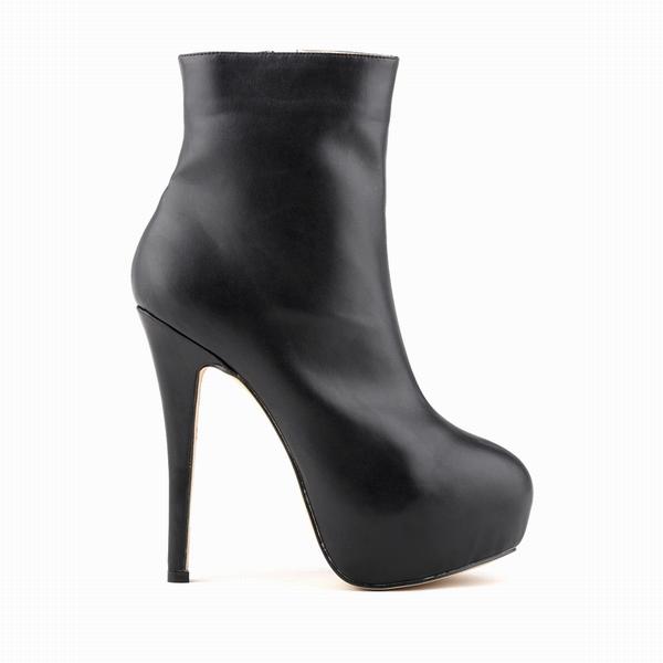 Женские сапоги, сексуальные шпильки, новые осенне-зимние туфли на высоком каблуке 14 см, из искусственной кожи, с круглым носком, на платформе, женские короткие туфли до щиколотки