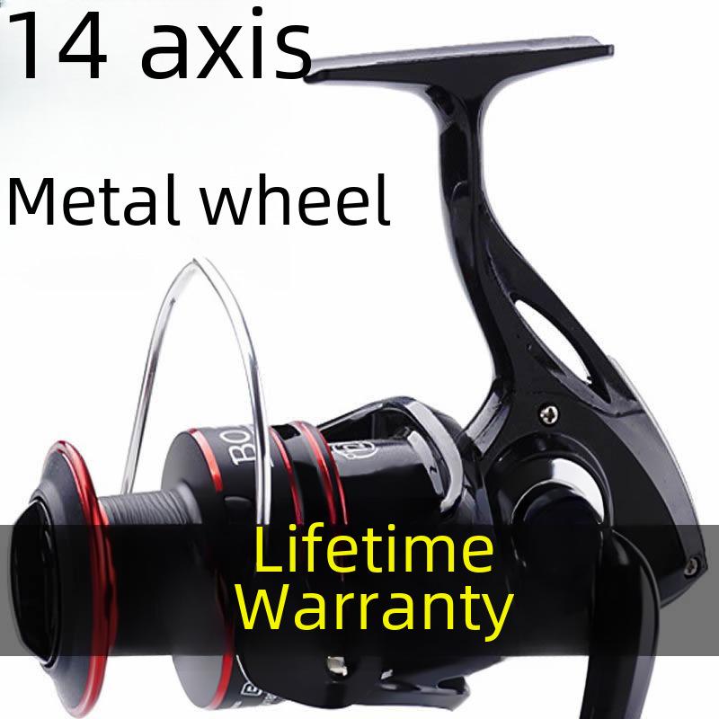 Высококачественная металлическая спиннинговая рыболовная катушка для морской и каменистой рыбалки, в комплект входит леска и катушка с приманкой - идеально подходит для рыболовных снастей