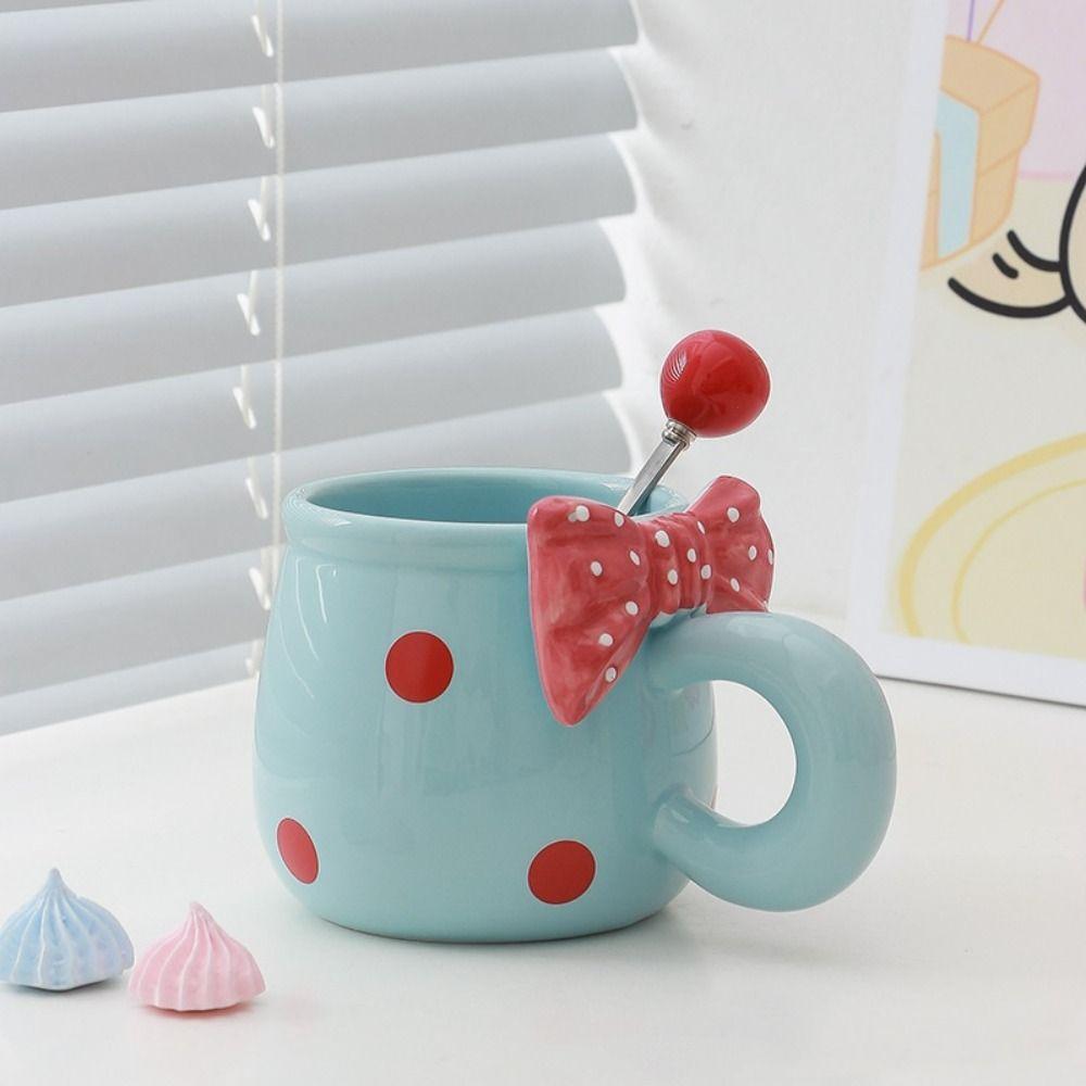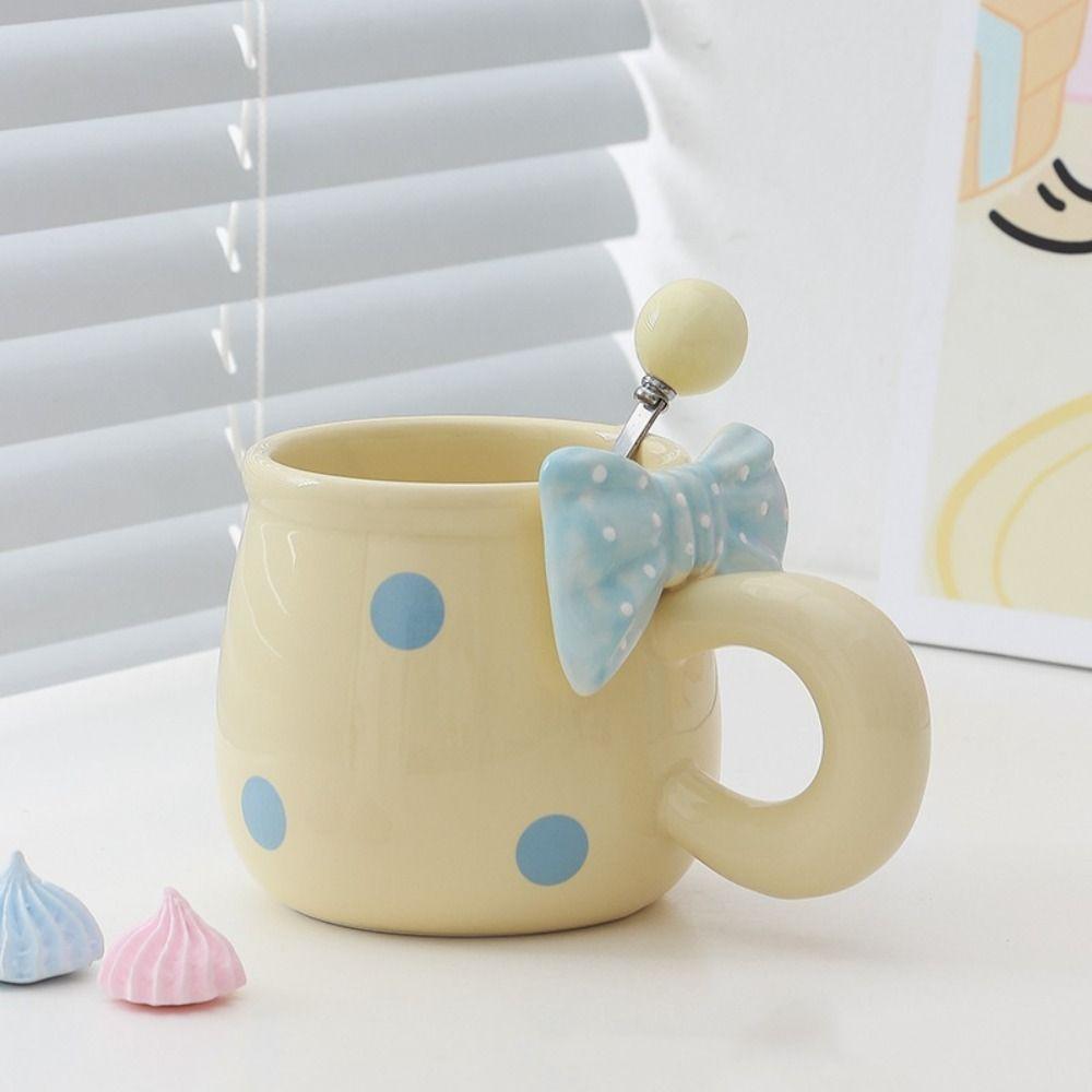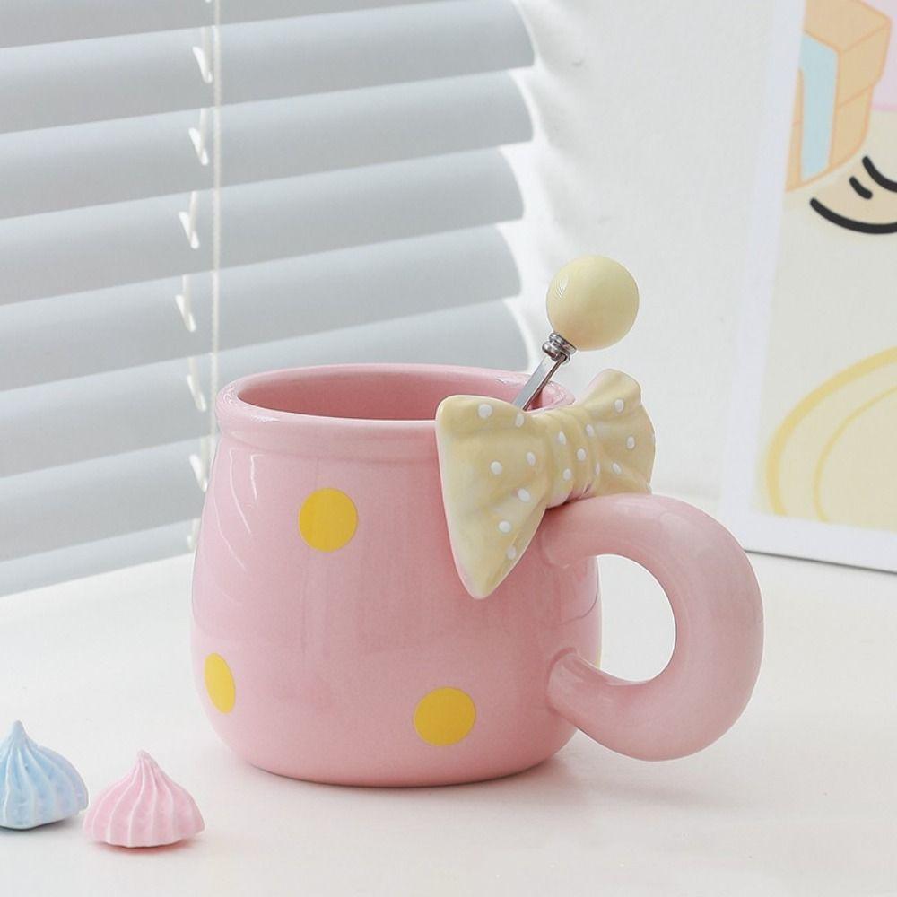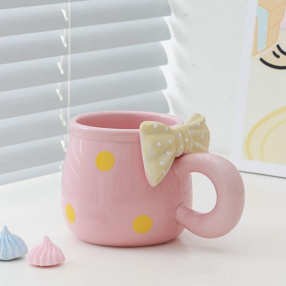 Жаропрочные керамические кружки с бантом, чашка для напитков, милые кофейные чашки для дома