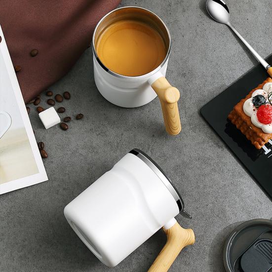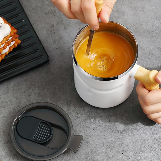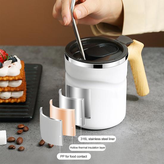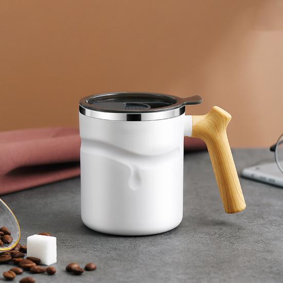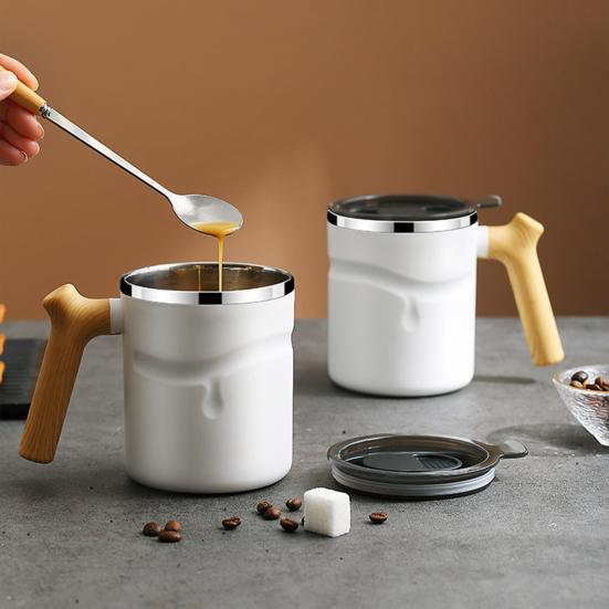 Кофейная кружка, 510 мл, большая емкость, противообжигающая, герметичная деревянная ручка с крышкой, сохраняющая тепло, нержавеющая сталь
