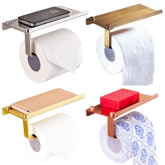 Настенный держатель для туалетной бумаги и ванной комнаты с полкой для хранения мобильного телефона