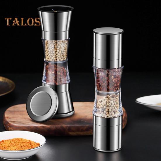 Мельница для соли из нержавеющей стали, регулируемая степень грубости, легко чистящаяся, шлифовальная машина с двойной головкой 2 в 1 для приправ