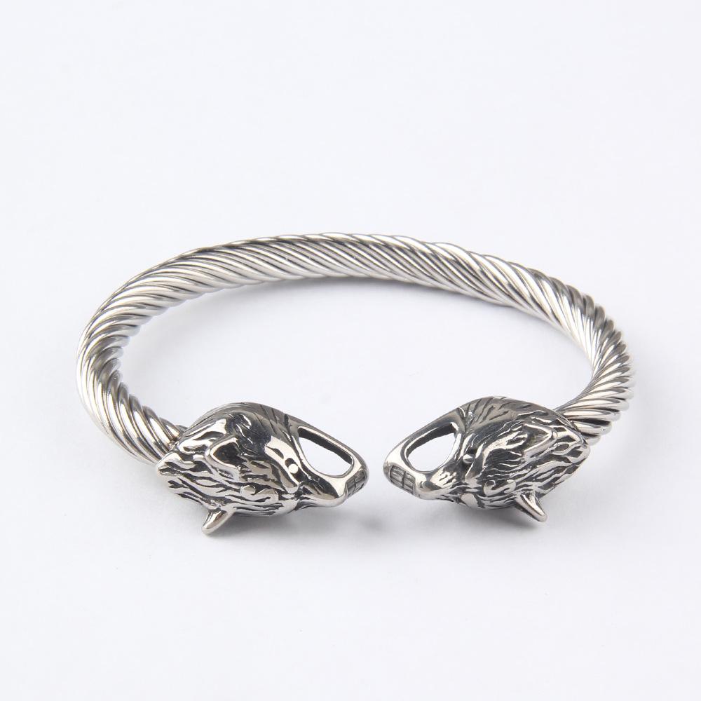 Европейский и американский мужской браслет из титановой стали, скандинавский викинг, волк, ретро-браслет из нержавеющей стали, мужской простой открытый браслет, ювелирные аксессуары