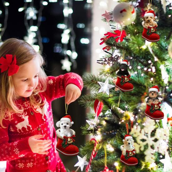 Праздничный дизайн щенка: Наши подвесные украшения с очаровательными щенками в шапках Санты и рождественских ботинках излучают праздничное очарование и причудливость.. Добавьте восхитительную нотку сезонного настроения в свое окружение с помощью этих очаровательных украшений.