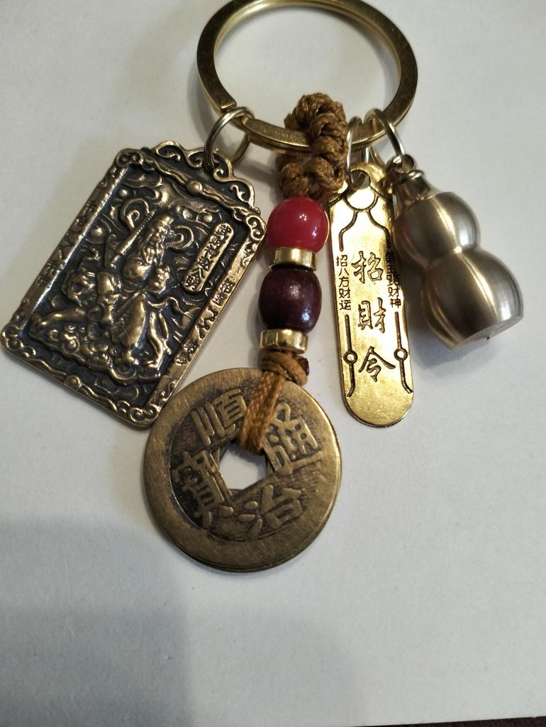 Китайский стиль зодиак латунная тыква пять императоров деньги брелок металл фэншуй