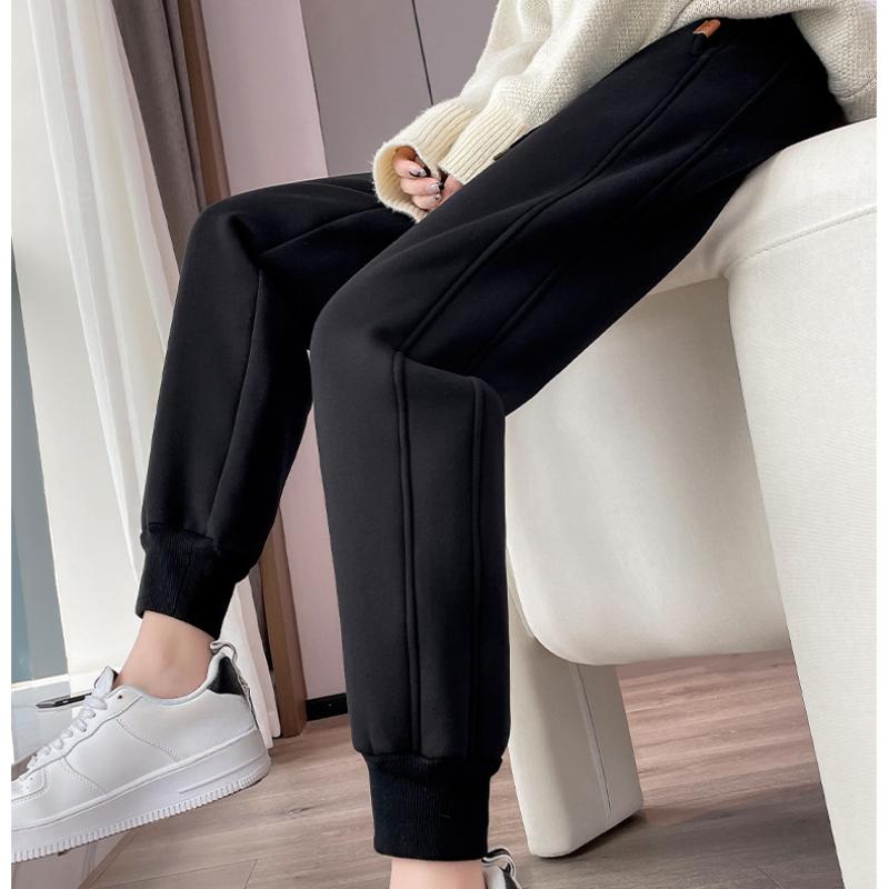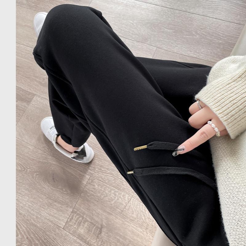 Зимние спортивные штаны женские из плотного бархата эластичные спортивные штаны с высокой талией на шнуровке теплые зимние брюки длиной до щиколотки