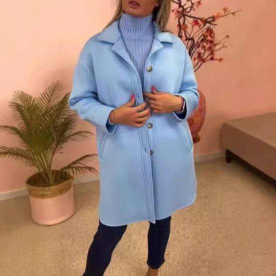 Стильный воротник на лацкане: Дополните свой образ этой женской курткой с воротником-лацканами, длинными рукавами, средней длиной и широкой талией.. Легко сочетайте простоту и непринужденную элегантность в своем повседневном гардеробе.