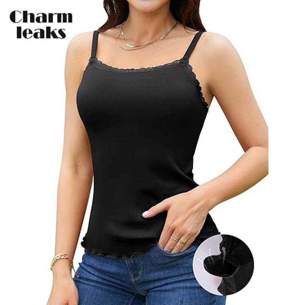 CHARMLEAKS Женская кружевная майка со встроенным бюстгальтером, регулируемые бретельки-спагетти, майка-топ, салатовый подол, ребристая майка — купить товар онлайн с бесплатной доставкой по всему миру!