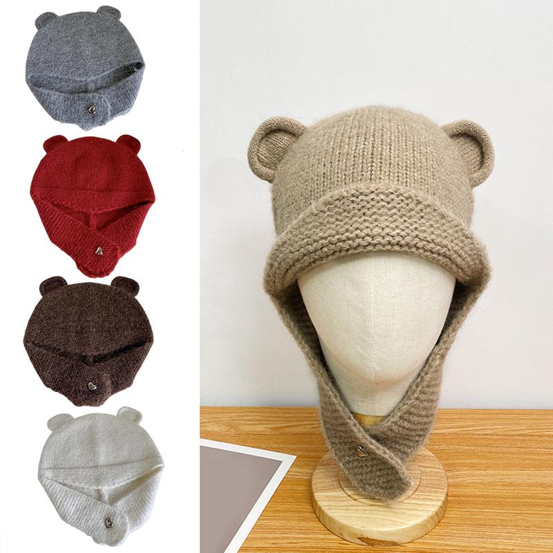 Женская зимняя японская симпатичная вязаная шапка-бомбер с ушками, круглая шапка с медвежьими ушками, защитные шапочки-бини — купить товар онлайн с бесплатной доставкой до всему миру!