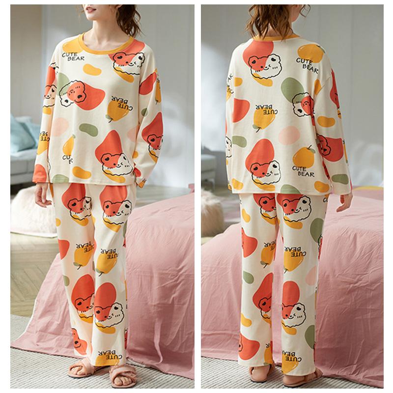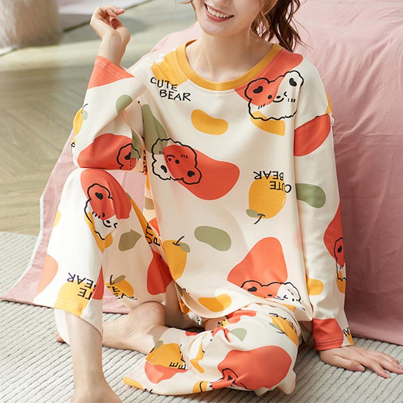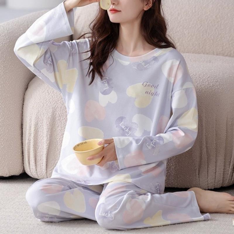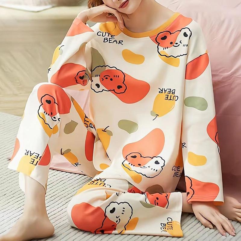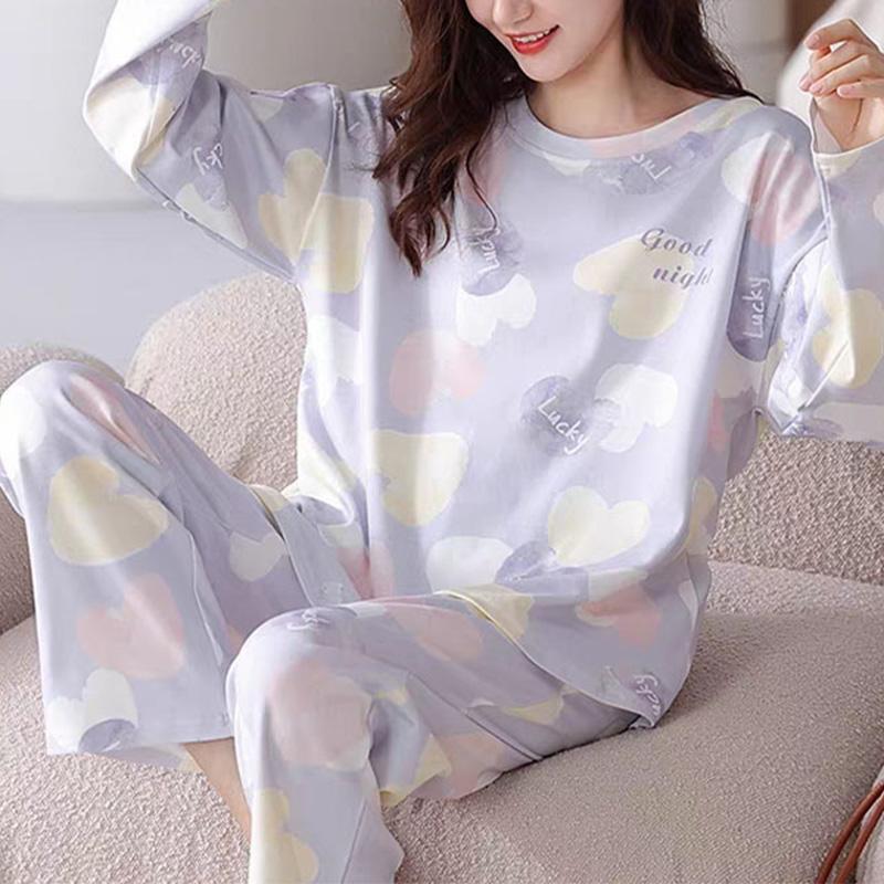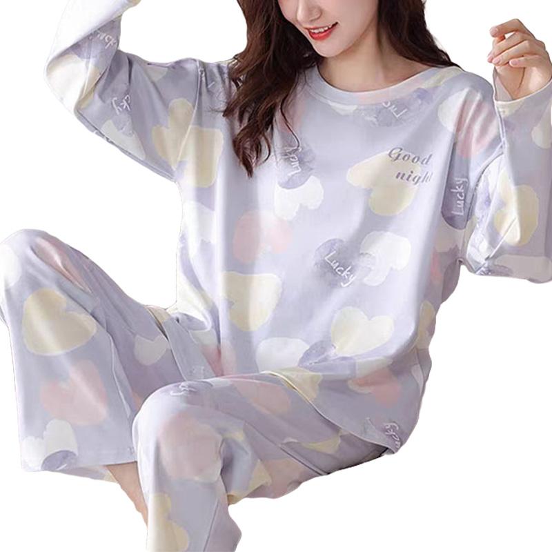 1 шт., большой размер, свободная, удобная, женская, простая, с рисунком, пижама с длинным рукавом и брюками, комплект домашней одежды