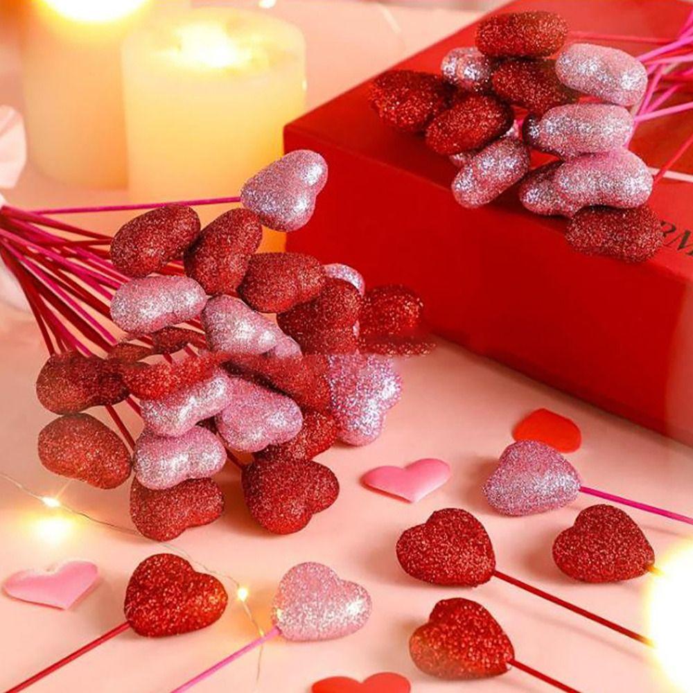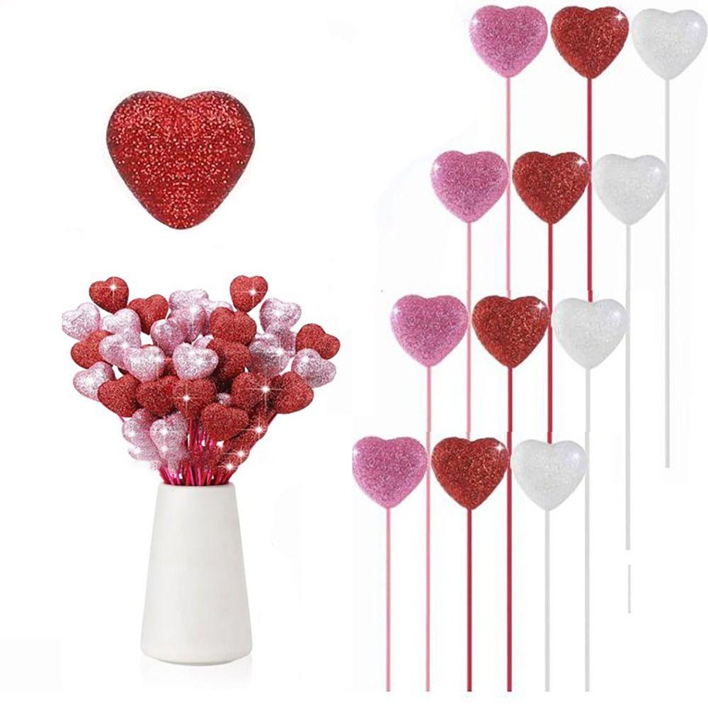 5 шт. свадебные цветы сердце палочки палочка блестящая пена ваза украшение многоразовые украшения для торта букет
