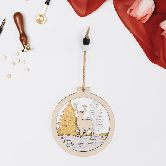 Наша подвеска на елку, изготовленная из высококачественного древесного материала, рассчитана на длительное использование и станет ценной частью вашего праздничного декора на долгие годы..