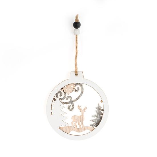 Представляем нашу деревянную подвеску на елку, идеальное дополнение к вашим праздничным украшениям! Этот универсальный кулон можно повесить на рождественскую елку, стену, дверь, окно или камин, придав любому пространству нотку праздничного очарования..