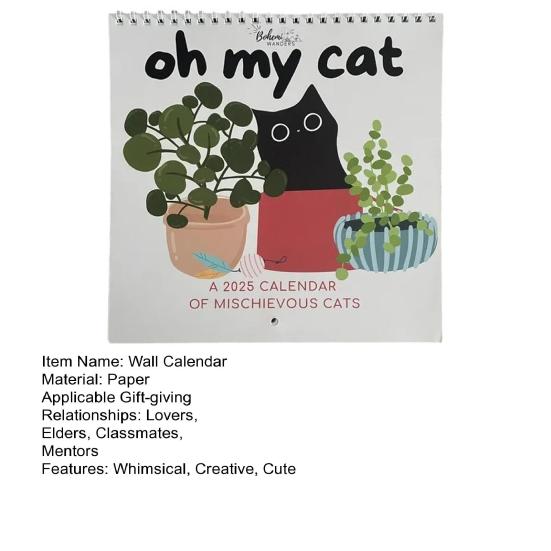 Оставайтесь организованными и вдохновляйтесь с этим очаровательным календарем с кошками. Отслеживайте свои цели, важные даты, праздники и дни рождения без особых усилий. Изготовлены из высококачественных материалов с яркими цветами и печатью высокой четкости для длительного срока службы.. Милый дизайн, вдохновленный кошками, дополнен изысканными иллюстрациями, которые добавят визуального наслаждения в вашу повседневную жизнь..