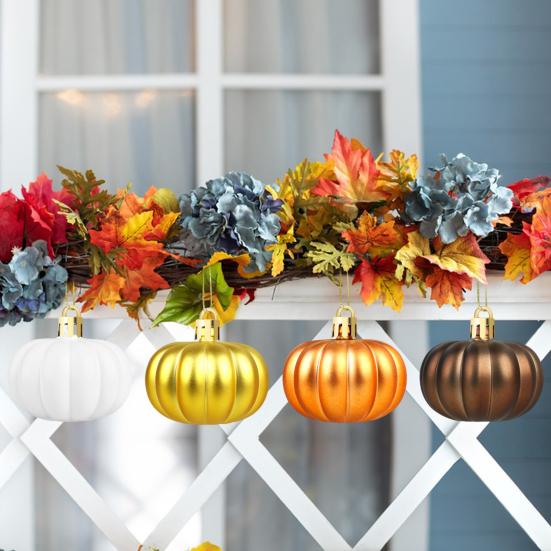 Несколько цветов: В этот набор входят 4 ярких украшения в виде тыквы оранжевого, золотого, белого и коричневого оттенков, что обеспечивает классическую цветовую палитру для разнообразных декоративных нужд.