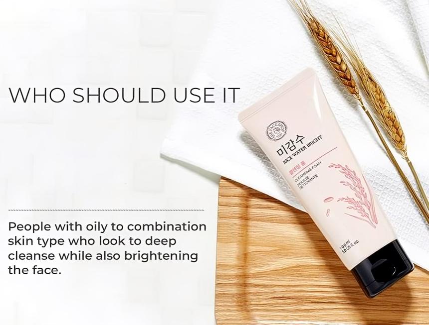 The Face Shop Rice Water Bright Foaming for Glowing Face Wash, Cleanser, Korean Skin Care 100ml