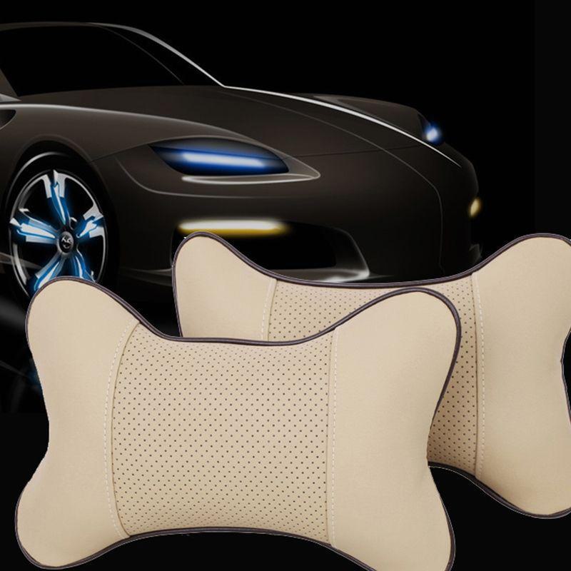 Дышащая массажная подушка для сиденья автомобиля: Кожаный подголовник двойного назначения для поддержки шеи и спины.