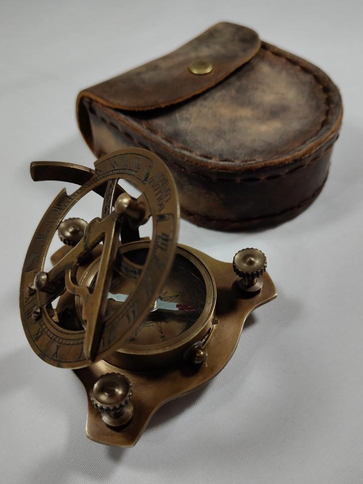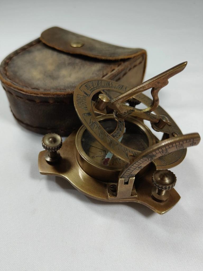 Солнечные часы-компас ручной работы из латуни с кожаным футляром – настоящий инструмент морской навигации (7,62 см) — купить товар онлайн с бесплатной доставкой по всему миру!