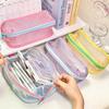Сплошной цвет на молнии прозрачный сетчатый пенал сумка для хранения ручек студенческий подарок
